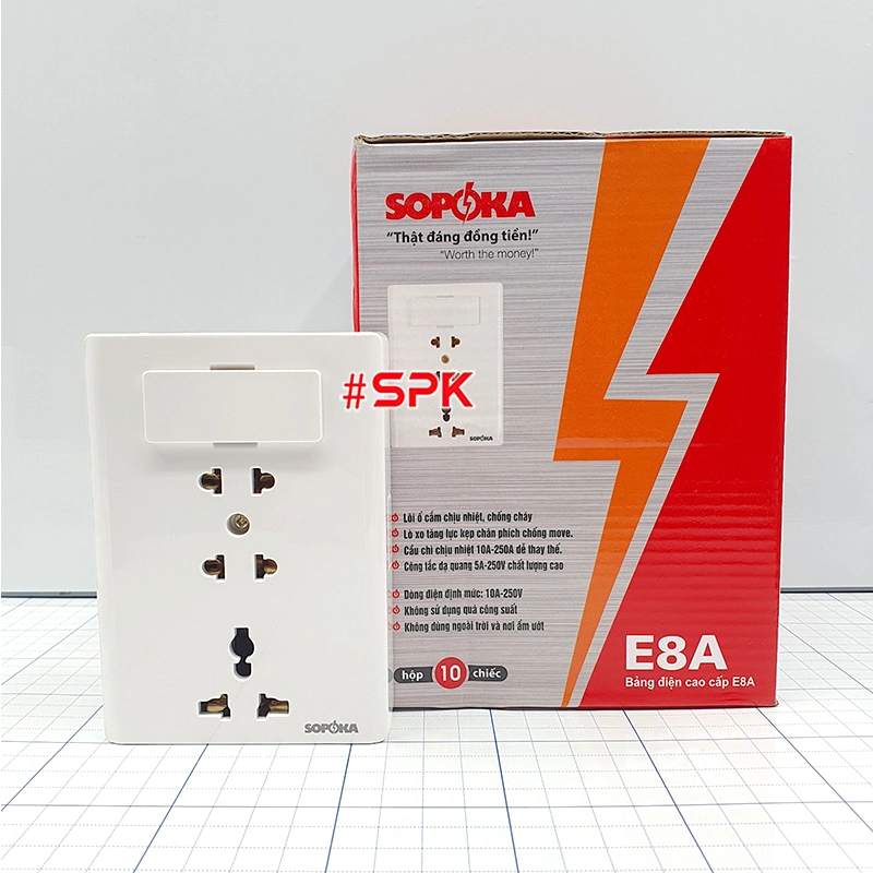 Từ khóa: Bảng điện 3 ổ cắm lắp nổi, Bảng điện nổi SOPOKA, E8A SOPOKA, bảng điện cao cấp, bảng điện chịu nhiệt, bảng điện chống cháy, bảng điện gia đình.