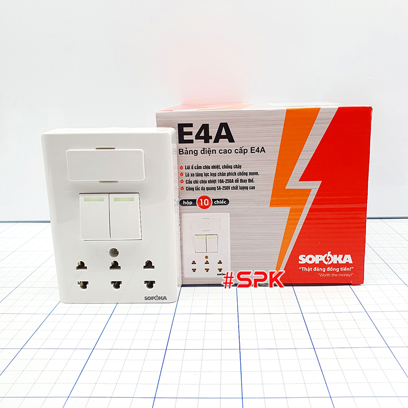 Từ khóa: Bảng điện cao cấp SOPOKA, bảng điện E4A, bảng điện 2 công tắc 3 ổ cắm, bảng điện lắp nổi, ổ cắm điện cao cấp, bảng điện an toàn, thiết bị điện SOPOKA, bảng điện cho gia đình, bảng điện văn phòng.