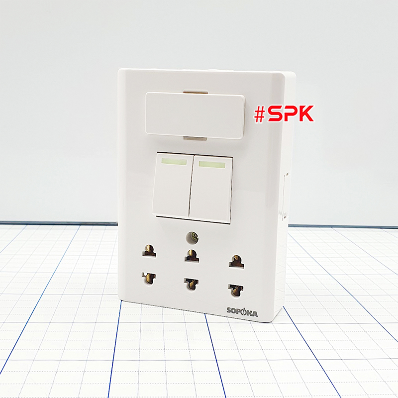 Bảng điện lắp nổi cao cấp dòng E 2 công tắc 3 ổ cắm SOPOKA thiết kế hiện đại, chịu nhiệt cao, chống cháy, đảm bảo an toàn tối đa khi sử dụng.