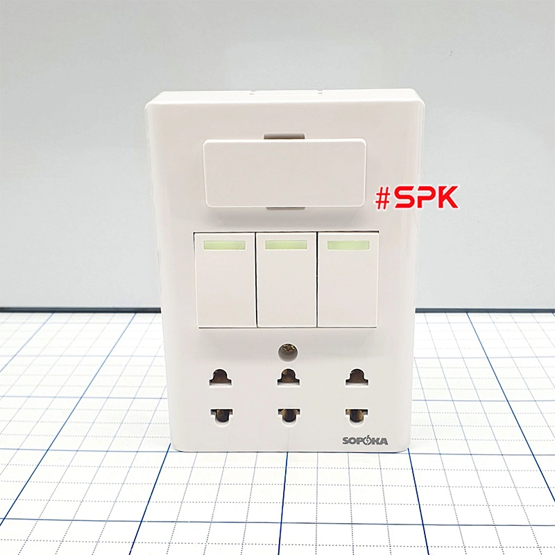 Bảng điện lắp nổi cao cấp dòng E 3 công tắc 3 ổ cắm SOPOKA thiết kế tinh tế, chịu nhiệt cao, chống cháy, công tắc dạ quang tiện lợi, đảm bảo an toàn khi sử dụng.