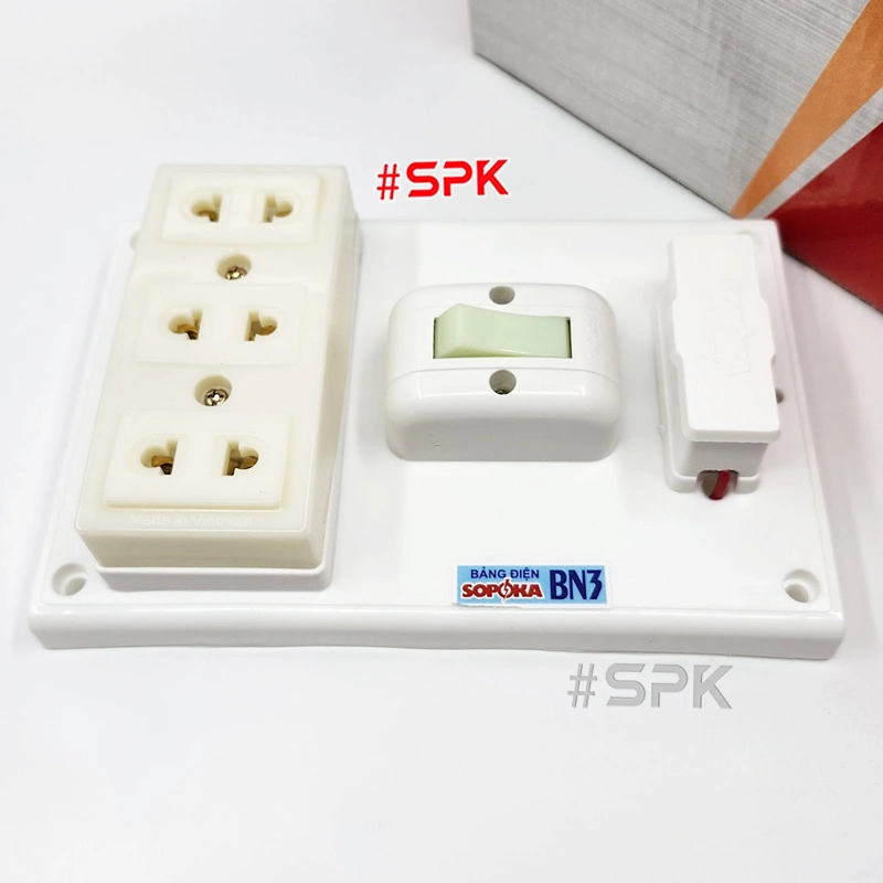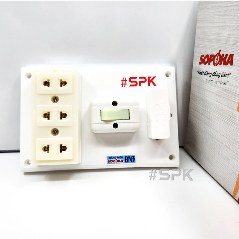 Bảng Điện Táp Lô 1 Công Tắc 3 Ổ Cắm Có Cầu Chì BN3 SOPOKA