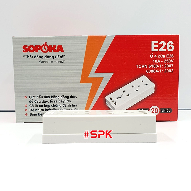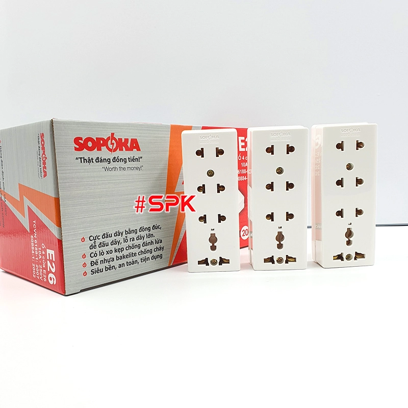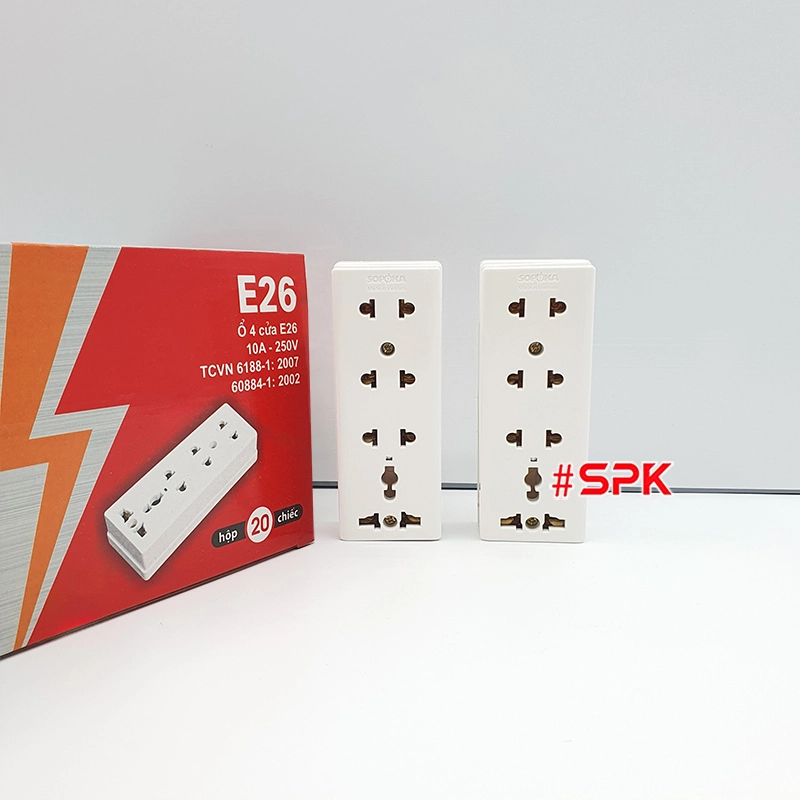 Từ khóa: Ổ cắm điện 4 lỗ gắn tường,Ổ cắm điện 4 lỗ táp lô,E26 SOPOKA, ổ cắm điện chịu nhiệt, ổ cắm chống cháy, ổ cắm nhựa ABS.
