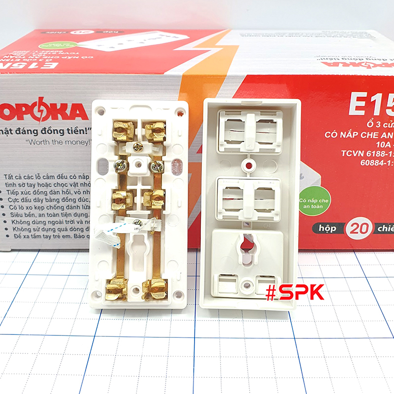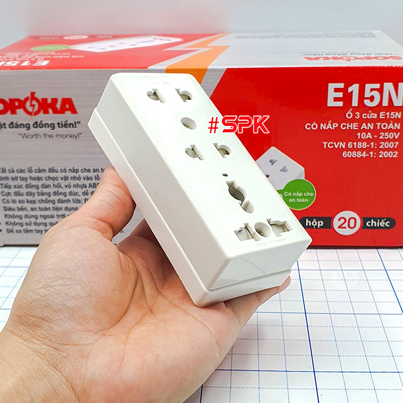 Mua Ổ cắm điện gắn tường, ổ cắm điện táp lô3 lỗ E15N SOPOKA tại: