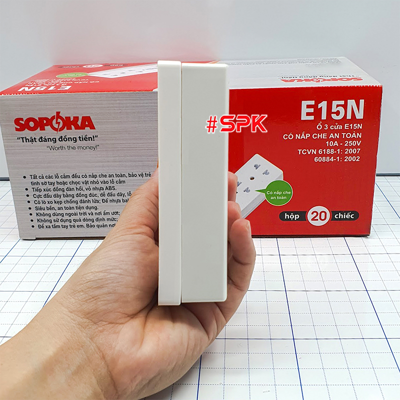 Thiết kế hiện đại, an toàn: Ổ cắm điện SOPOKA E15N có thiết kế độc đáo và khác biệt, phù hợp với mọi không gian hiện đại.