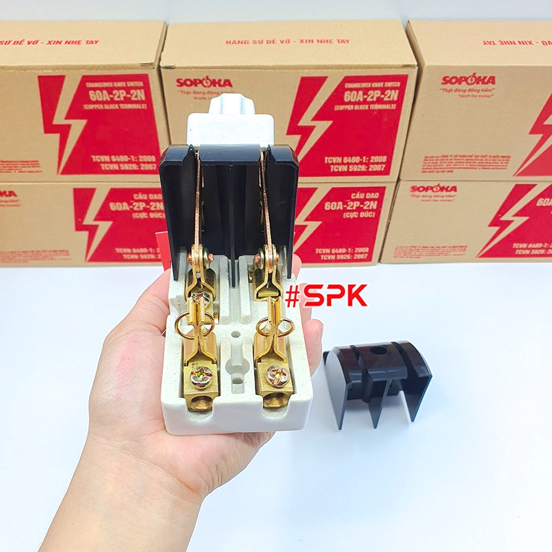 Chất liệu sứ trên cầu dao SOPOKA có bền không? Cầu dao sử dụng sứ cách điện chất lượng cao, chịu nhiệt và chống cháy hiệu quả, đảm bảo tuổi thọ lâu dài.