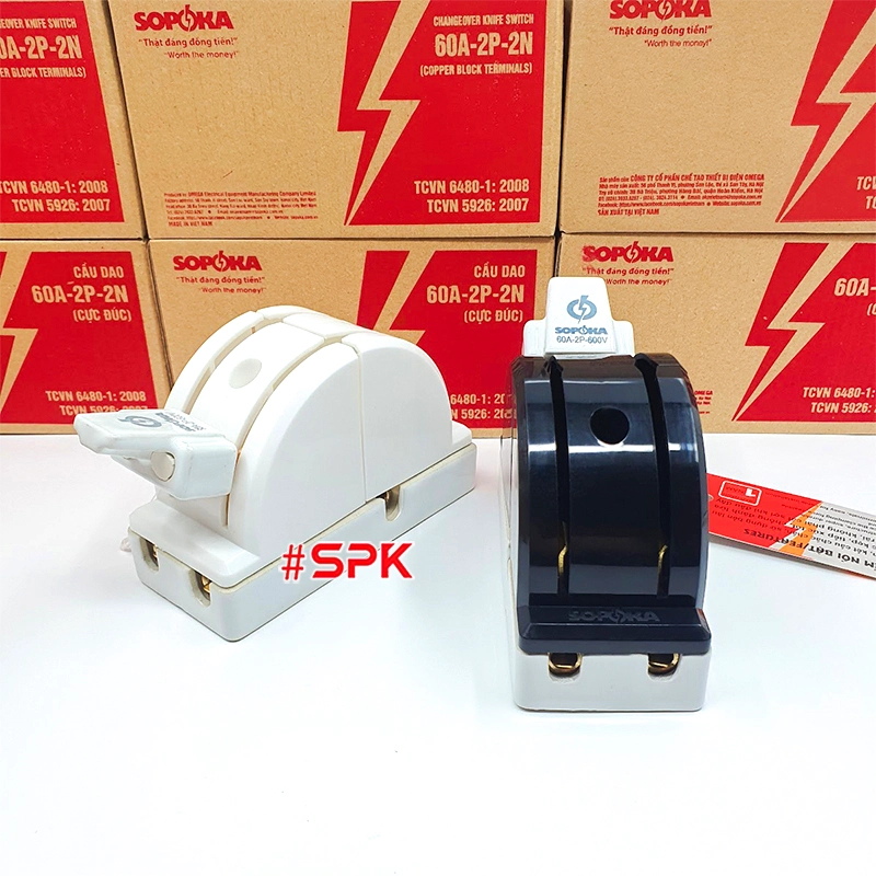 Cầu Dao Đảo Đế Sứ 1 Pha 60A 2P 600V 2N Cực Đúc Màu Đen D22(A) SOPOKA