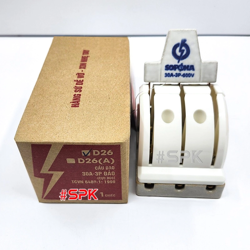 Cầu dao này có thể điều khiển dòng điện bao nhiêu? Cầu dao SOPOKA D26(A) có thể điều khiển dòng điện lên đến 30A ở điện áp 600V, rất phù hợp với các hệ thống điện công nghiệp.
