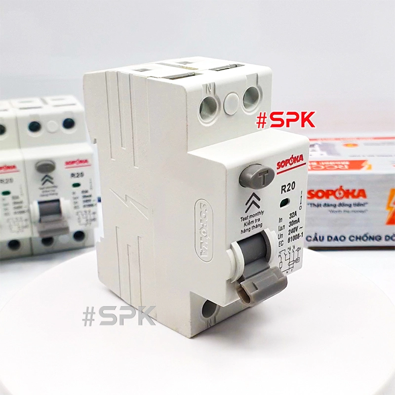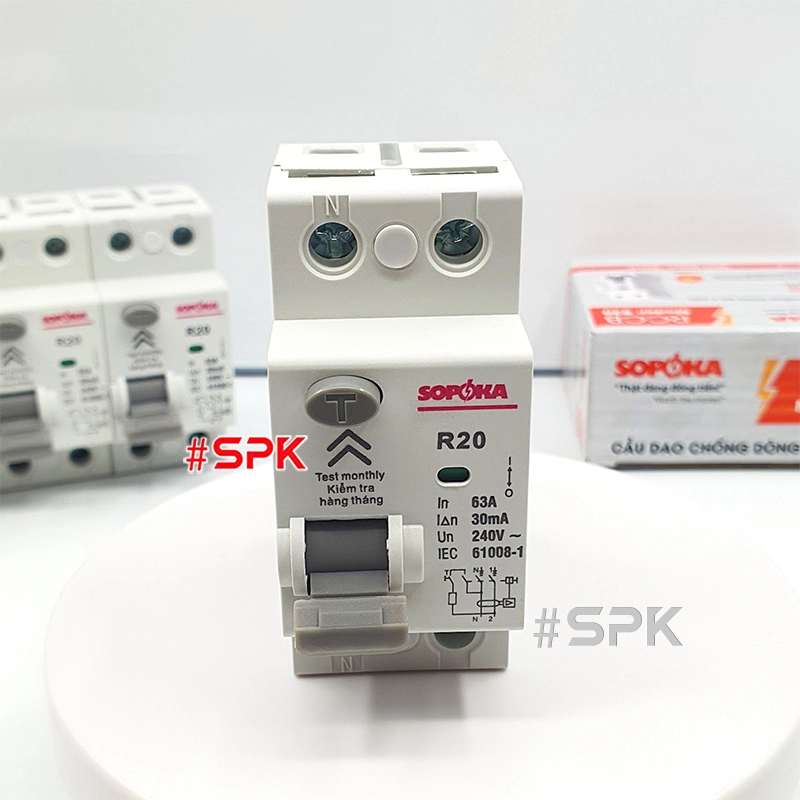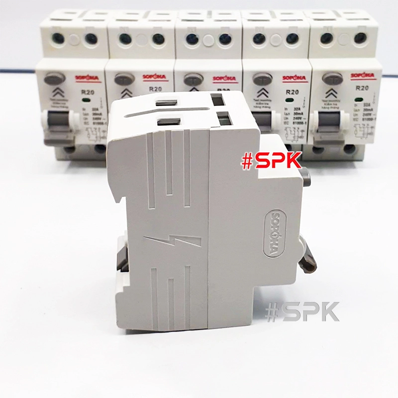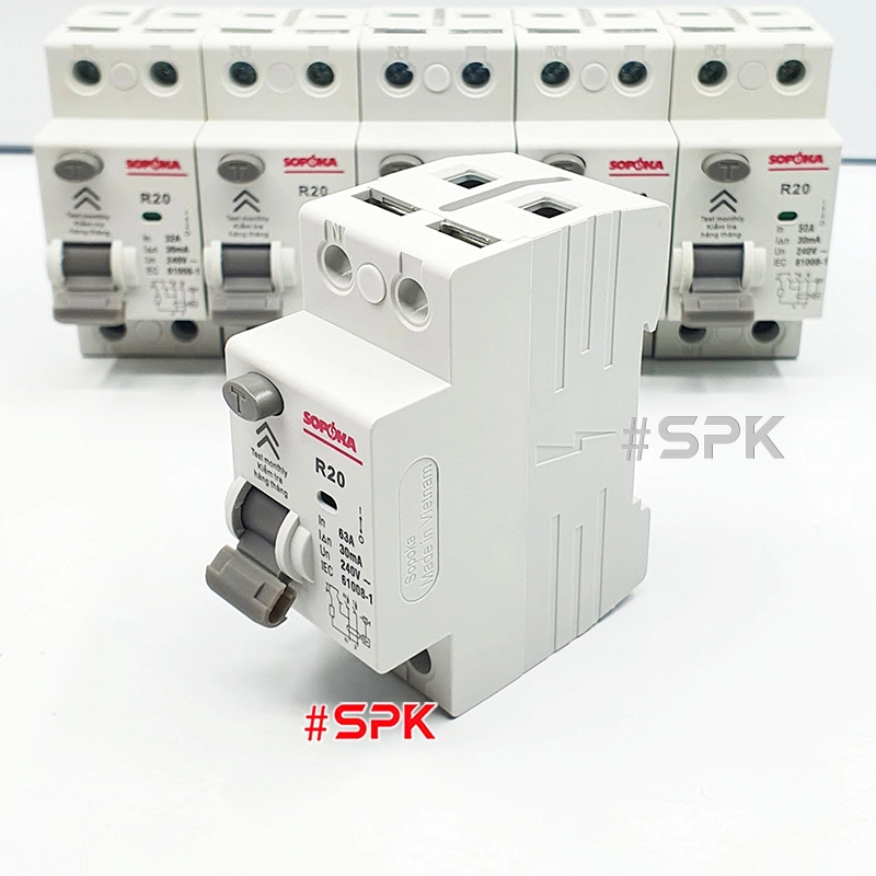 Aptomat Chống Giật RCCB 32A - 40A - 50A - 63A 1 Pha 2P 30mA Cấu Dao Chống Rò 2 Cực SOPOKA