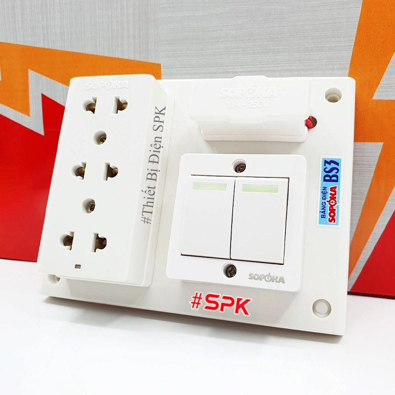 BS3 SOPOKA có mấy công tắc và mấy lỗ cắm? Sản phẩm có 2 công tắc và 3 lỗ cắm.