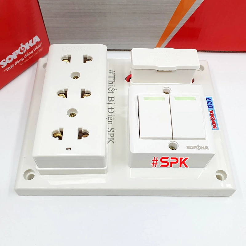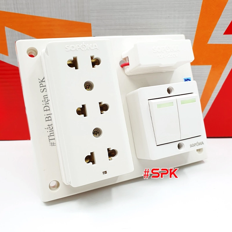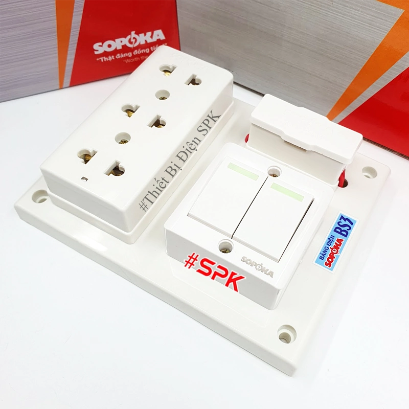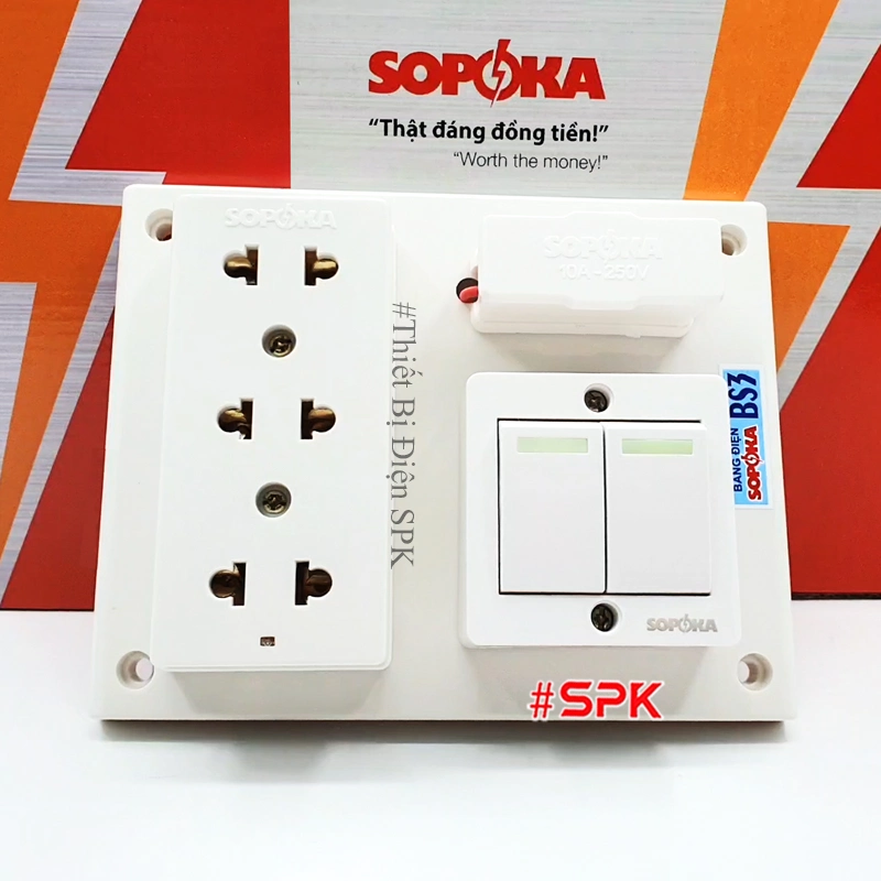 Mua Bảng Điện 2 Công Tắc 3 Lỗ Cắm Có Cầu Chì BS3 SOPOKA tại: