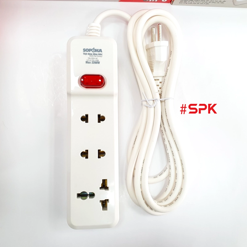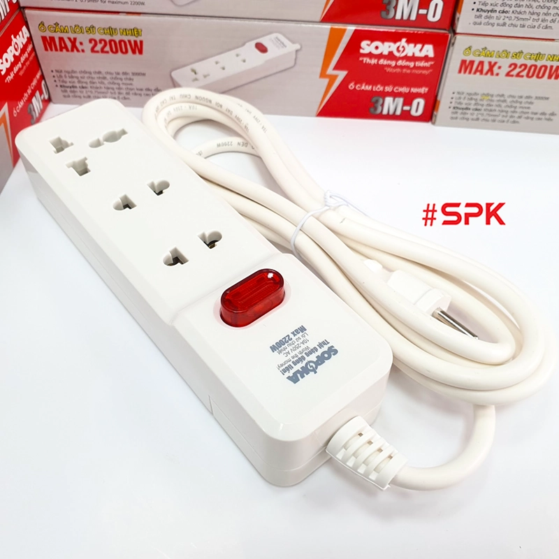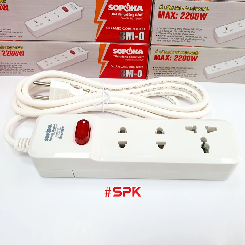 Ổ Cắm Điện 3 Lỗ 2200W Lõi Sứ Có Dây Và Công Tắc 3M2 SOPOKA