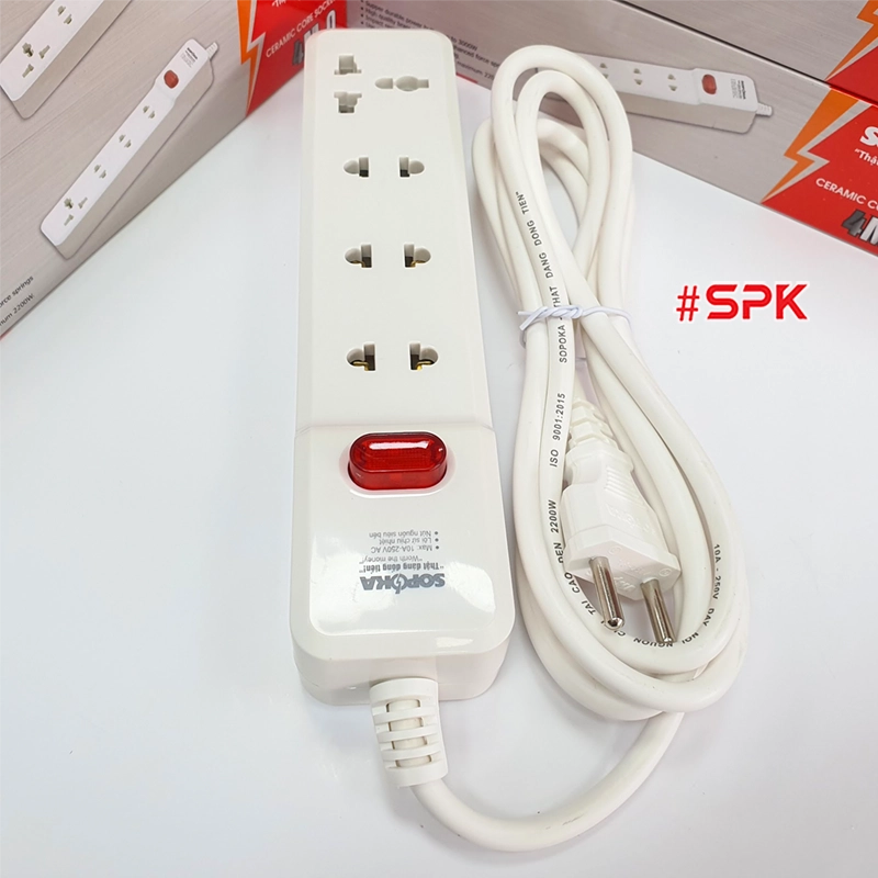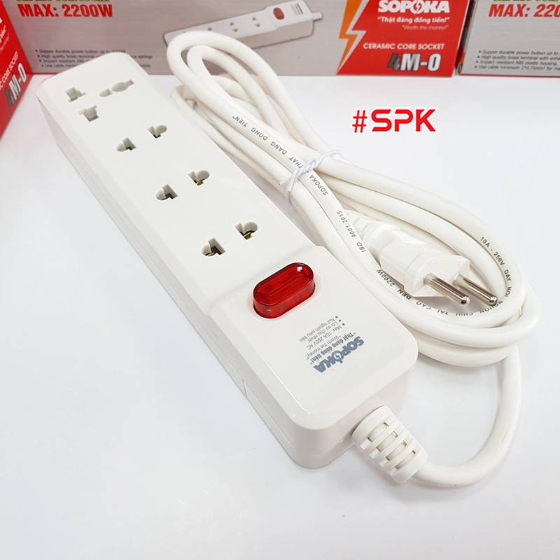 Ổ Cắm Điện 4 Lỗ 2200W Lõi Sứ Có Dây Và Công Tắc 4M2 SOPOKA
