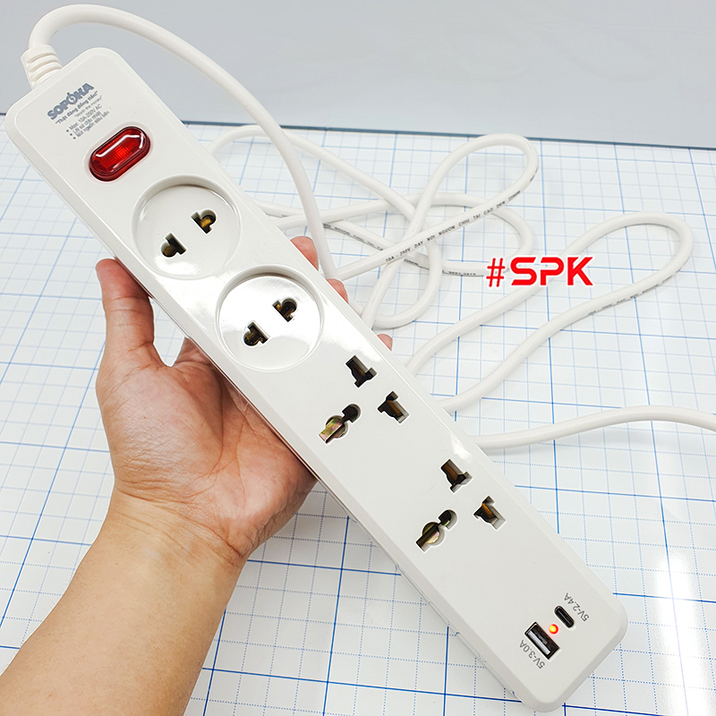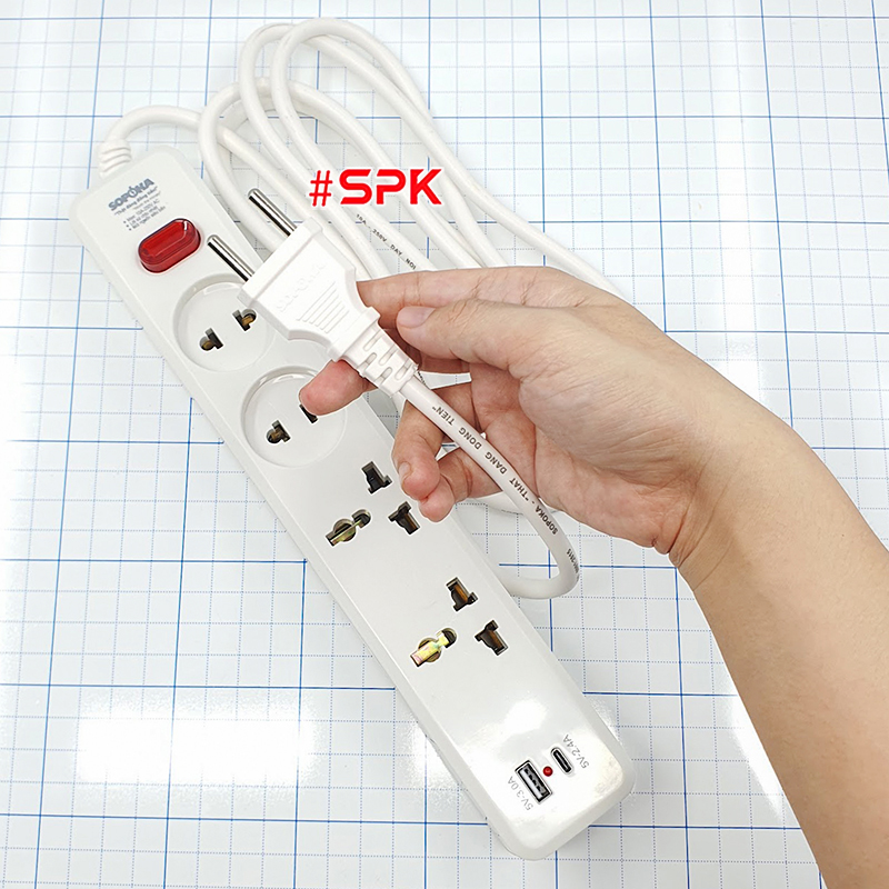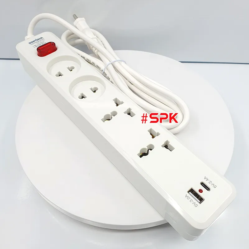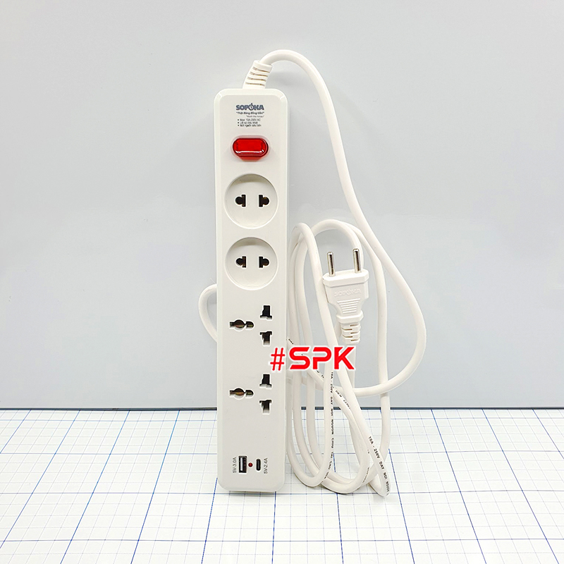 Ổ cắm điện 4 lỗ sạc nhanh USB lõi sứ chịu nhiệt SOPOKA 4C2 công suất tới 2200W, thiết kế lõi sứ chịu nhiệt chống cháy, vỏ nhựa ABS chống vỡ, kèm hai cổng sạc nhanh USB và USB Type-C công nghệ mới nhất. Sản phẩm an toàn, bền bỉ, tiện lợi cho mọi gia đình và văn phòng.