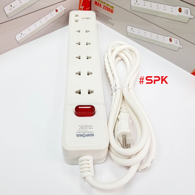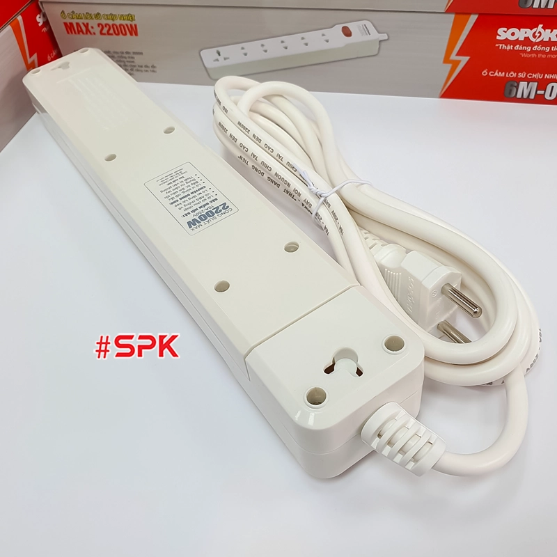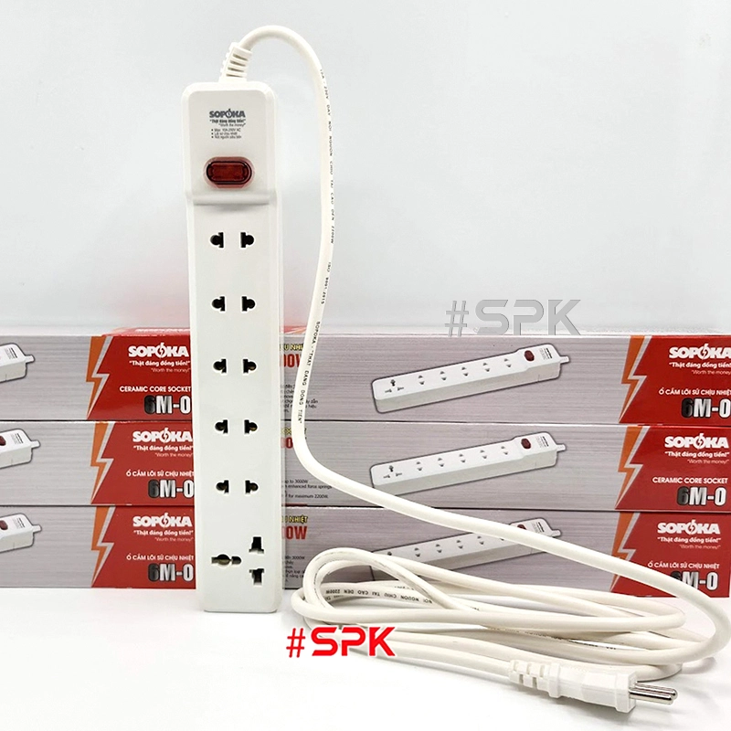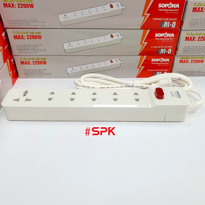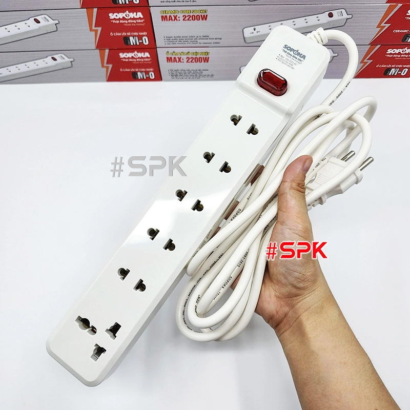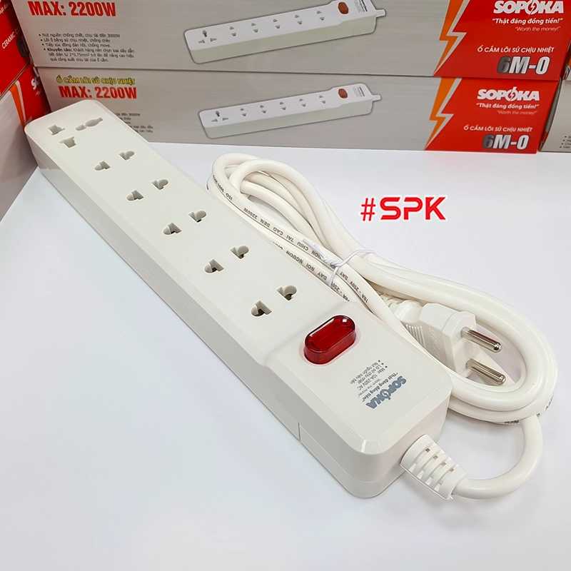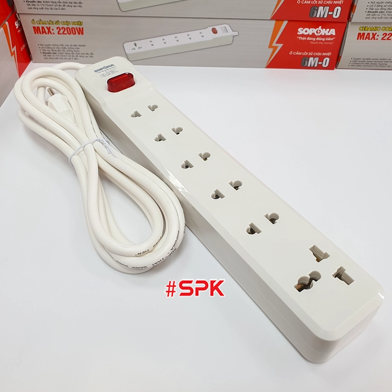 Ổ Cắm Điện 6 Lỗ 2200W Lõi Sứ Có Dây Và Công Tắc 6M2 SOPOKA