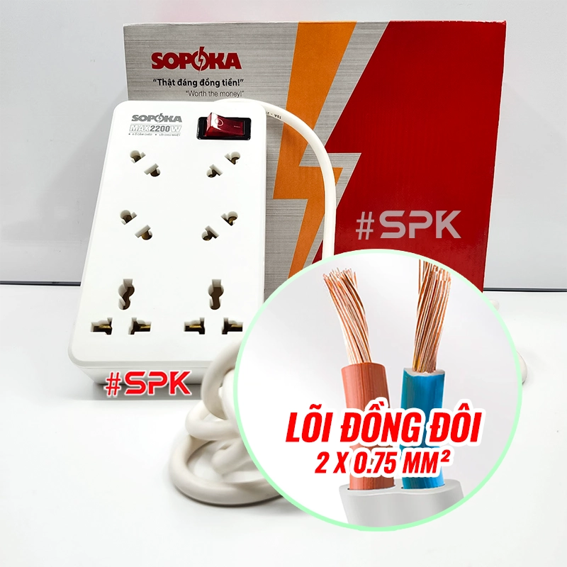 Ổ Cắm Điện 6 Lỗ Chéo Lõi Chịu Nhiệt 2200W 6A2 SOPOKA