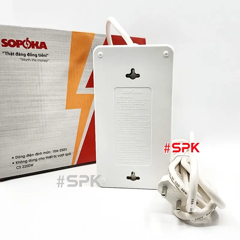 SOPOKA 6A2 dùng được cho nồi cơm hoặc ấm siêu tốc không? Dùng được nếu tổng công suất các thiết bị cắm cùng lúc không vượt quá 2200W. Với thiết bị nhiệt công suất lớn (nồi cơm, ấm siêu tốc, lò nướng nhỏ…), nên tránh chạy đồng thời quá nhiều thiết bị trên cùng một ổ để đảm bảo an toàn và độ bền.