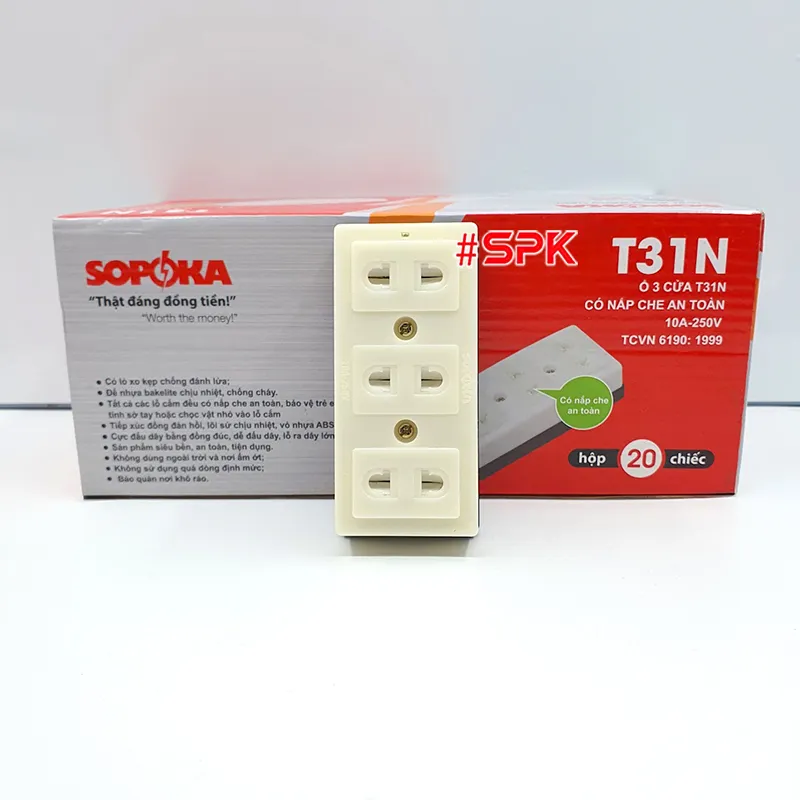 Từ khóa: T31N SOPOKA, ổ cắm điện gắn tường 3 lỗ, ổ cắm điện gắn táp lô, ổ cắm điện 3 lỗ, ổ cắm điện an toàn, ổ cắm SOPOKA, ổ cắm điện giá rẻ, ổ cắm điện chất lượng cao.