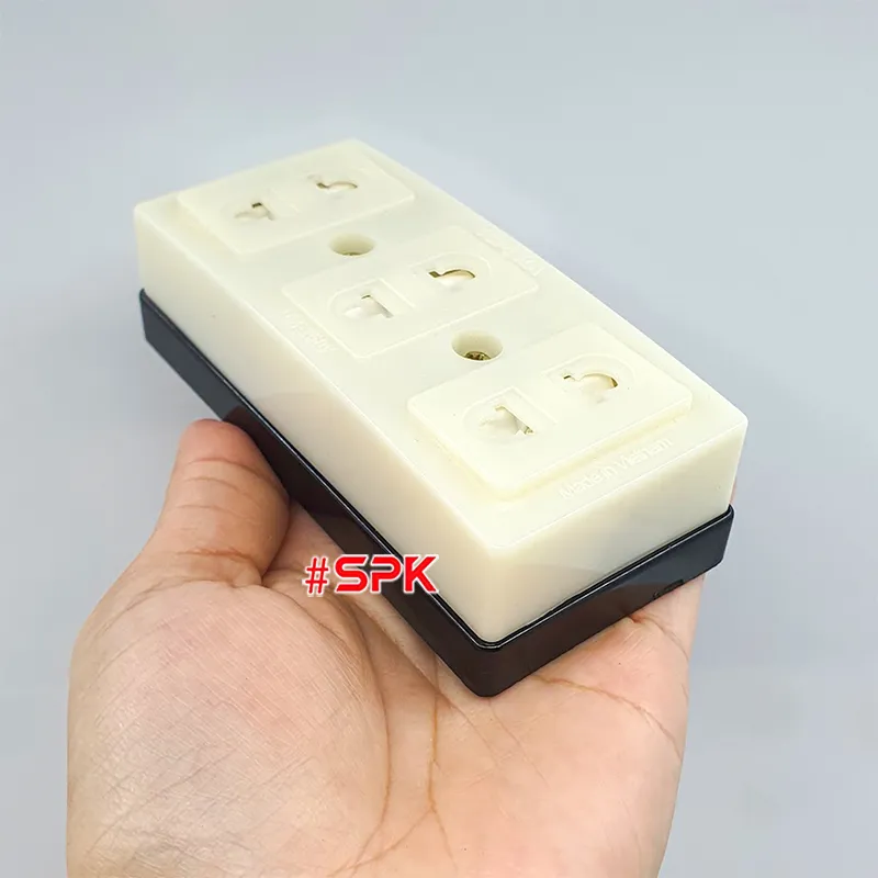Vật Liệu Bền Bỉ: Thân ổ cắm làm từ nhựa ABS chịu va đập cao, đế ổ cắm sử dụng nhựa bakelite chống cháy, nâng cao độ bền và tính an toàn.