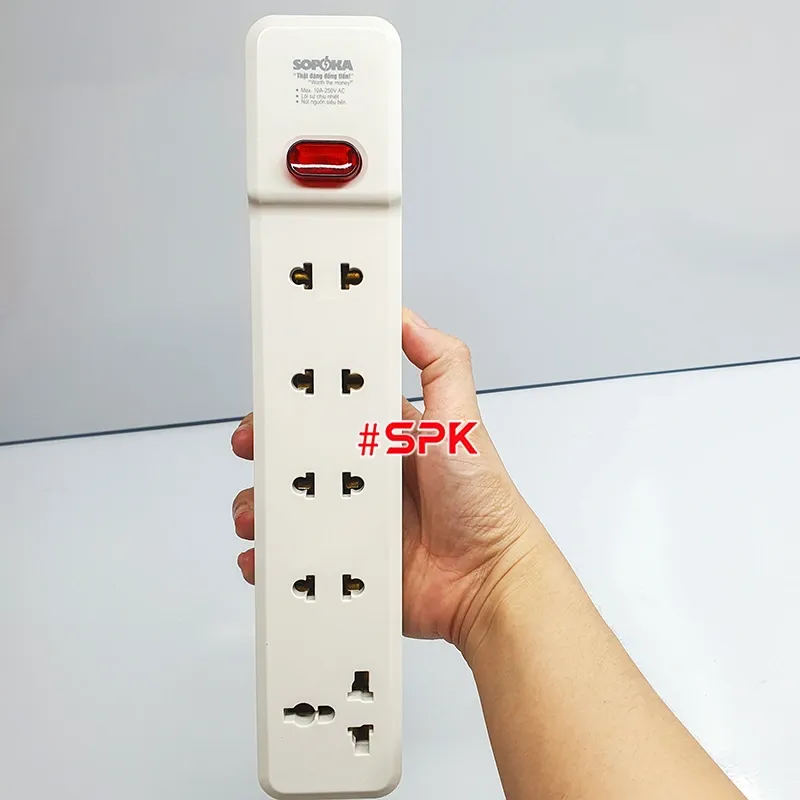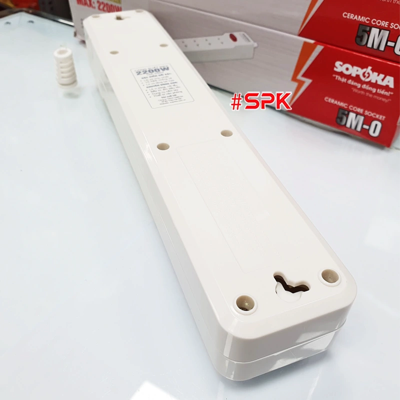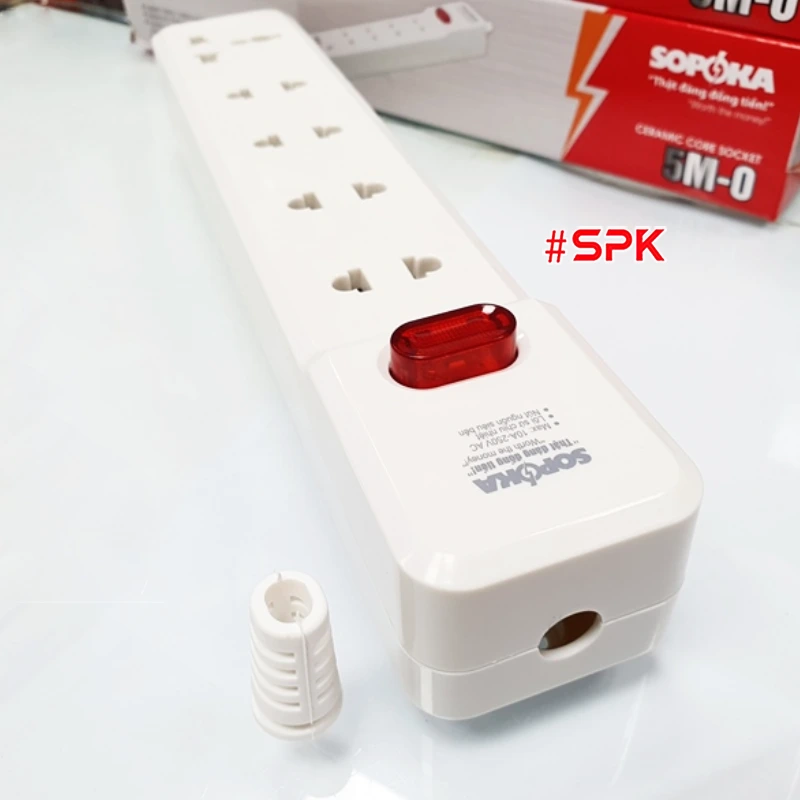 Ổ Cắm Điện 5 Lỗ 2200W Lõi Sứ Không Dây Có Công Tắc 5M-0 SOPOKA là thiết bị điện cao cấp của thương hiệu SOPOKA, được thiết kế với công suất mạnh mẽ, phù hợp sử dụng trong gia đình, văn phòng, cửa hàng và các không gian có nhu cầu sử dụng nhiều thiết bị điện cùng lúc. Sản phẩm nổi bật với khả năng chịu nhiệt, chống cháy vượt trội nhờ lõi sứ cao cấp và thiết kế vỏ nhựa ABS bền bỉ, an toàn tuyệt đối.