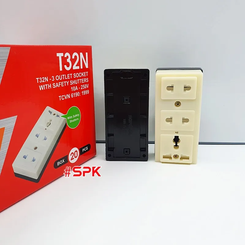 Từ khóa: ổ cắm T32N Sopoka; ổ cắm 3 lỗ gắn táp-lô; ổ cắm lắp nổi 3 lỗ; ổ cắm 3 chấu đa năng; ổ cắm Sopoka chính hãng; nhựa ABS chịu va đập; đế Bakelite ~170°C; ổ cắm gắn tường 3 lỗ; ổ cắm bền chống vỡ; ổ cắm văn phòng – gia đình; ổ cắm 2200W; T32N có nắp che an toàn; mua ổ cắm Sopoka giá tốt; T32 vs T32N; bảng điện phụ/ốp tường.