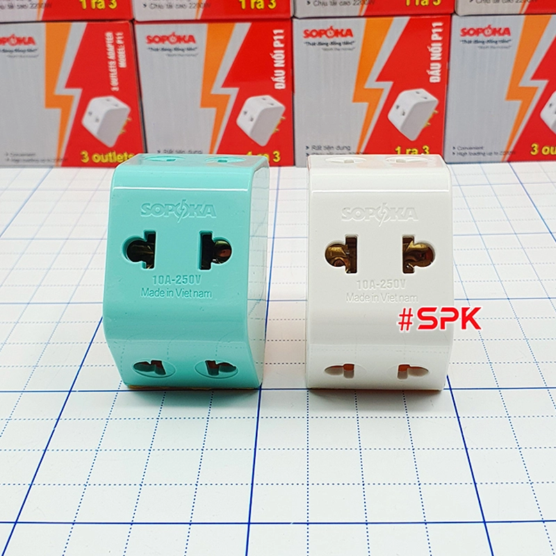 Từ khóa: Ổ chia điện, Ổ cắm điện chia 3, Ổ cắm điện 1 chia 3, Phích cắm chia điện, Phích điện chia 3, Đầu nối chia điện SOPOKA, P11 SOPOKA.
