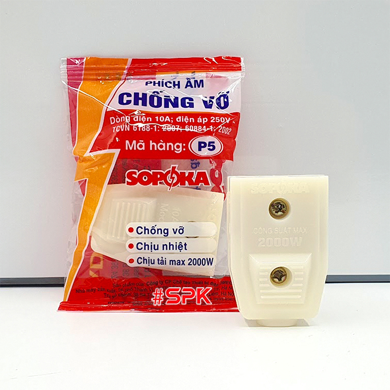 Từ khóa: Phích cắm điện âm,Phích cắm cái P5,Đầu nối điện âm SOPOKA,Phích cắm âm trắng,Phích cắm chịu tải 2000W,Phụ kiện điện dân dụng SOPOKA.