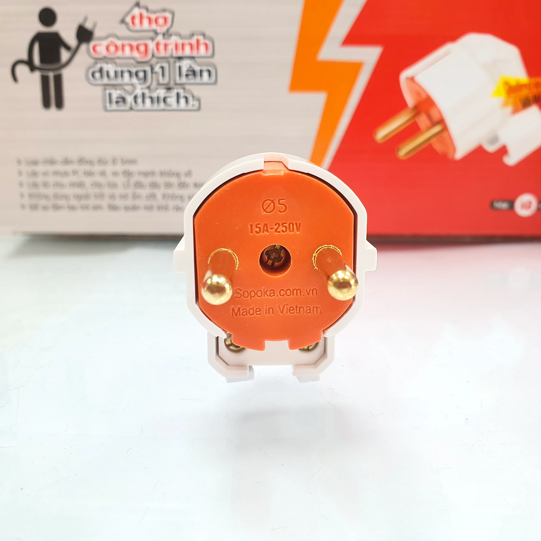 Từ khóa: Phích cắm điện 3000W,Phích cắm điện dương 3000W,Phích cắm điện công suất lớn,Phích cắm điện 15A,Phích cắm điện SOPOKA,Phích cắm điện chịu tải cao,P3000W-G1,P3000W-G1 SOPOKA,Phích cắm gập vuông góc.