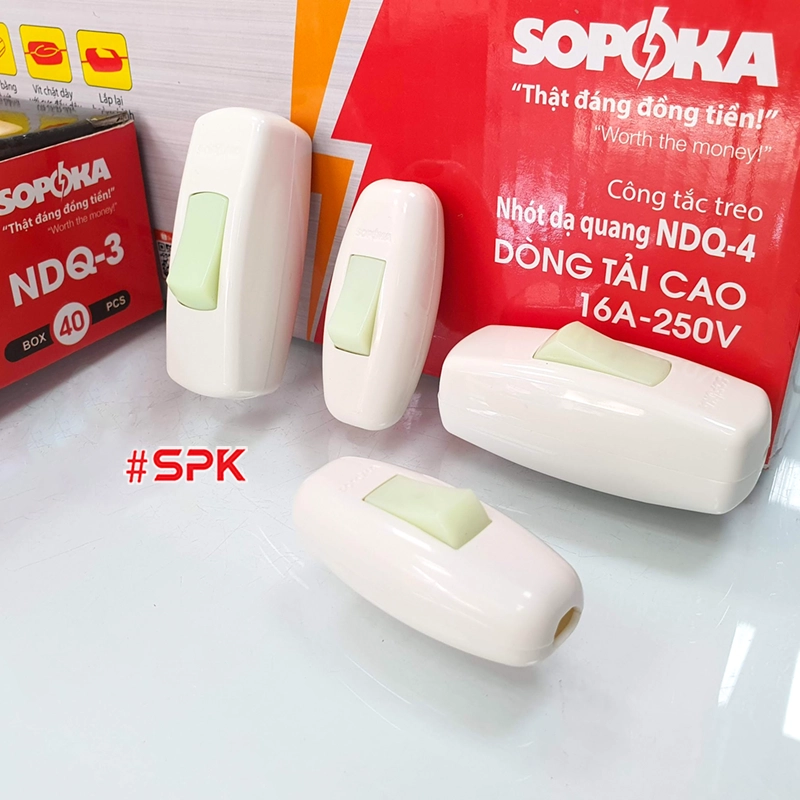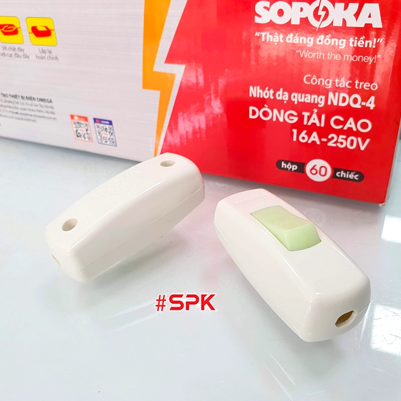 Từ khóa: Công tắc treo, Công tắc quả nhót, NDQ-4 SOPOKA, công tắc dạ quang, công tắc treo dạ quang, công tắc điện SOPOKA.