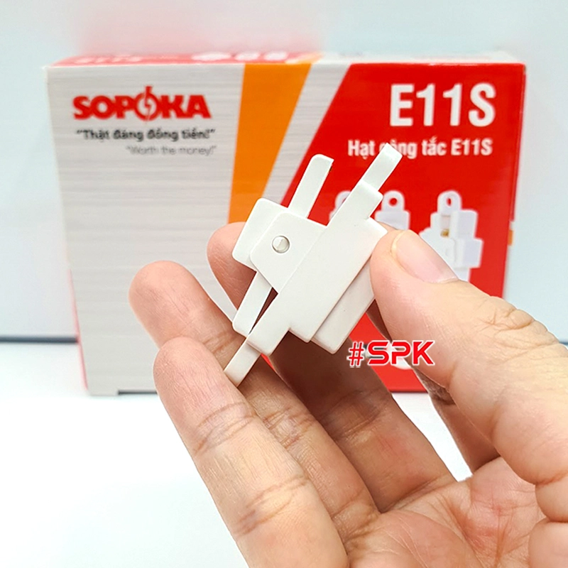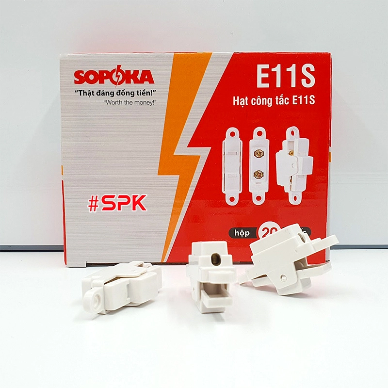 E11S có lắp vừa mọi bảng điện SOPOKA dòng E không? Có. Hạt E11S thiết kế theo chuẩn E-series, tương thích các bảng E3A, E4A, E5A, E4S (và các cấu hình liên quan). Trước khi thay, bạn kiểm tra đúng dòng E để bảo đảm vừa khít.